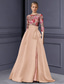 Corte A Hasta el Suelo Bordado con cuentas Vestido formal Vestido de madre de la novia Vestidos de noche Corte Cenicienta Vestimenta formal Elegante Bloque de Color Split High Media Manga Cuello