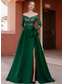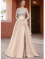 Corte A Hasta el Suelo Vestidos de noche Corte Cenicienta Vestimenta formal Elegante Sedoso Sin Mangas Hombros Caídos Boda Formal Bolsillo Satén elástico con Plisado Cuentas Abertura