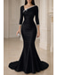 Corte Trompeta Sirena Hasta el Suelo Vestidos de noche Vestido de baile con sobrefalda Vestimenta formal Elegante Reluciente Estilo de Celebridad Manga Larga Cuello Barco Fiesta de jardin Boda Satén