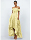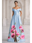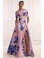 Corte A Hasta el Suelo Vestidos de noche Elegante Floral Manga Corta Hombros Caídos Fiesta de jardin Boda Bolsillo Satén con Estampado flor