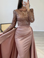 Corte Trompeta Sirena Hasta el Suelo Vestidos de noche Vestido de baile con sobrefalda Vestimenta formal Elegante Manga Larga Escote de ilusión Carnaval Formal Desmontable Satén Lentejuelas con