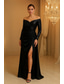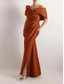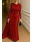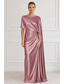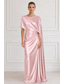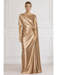 Corte A Hasta el Suelo Vestidos de noche Elegante A Capas Split High Manga Larga Un Hombro Boda Formal Bolsillo Satén con Lazo(s) Fruncido