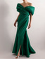 Corte Trompeta Sirena Hasta el Suelo Vestido formal Vestido de noche Vestidos de noche Elegante Vintage Manga Corta Hombros Caídos Formal Invitado a la boda Satén con Un Color