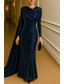 Corte A Hasta el Suelo Trajes de gala Vestidos de noche Corte Cenicienta Vestimenta formal Elegante Vintage Manga Larga Cuello Barco Boda Formal Crepé elástico con Plisado