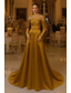 Corte Trompeta Sirena Cola de Corte Trajes de gala Vestidos de noche Corte Cenicienta Vestimenta formal Elegante Reluciente Estilo de Celebridad Manga Larga Hombros Caídos Fiesta de jardin Boda Satén