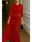 Funda Columna Hasta el Suelo Bordado con cuentas Vestido formal Vestido de madre de la novia Vestidos de noche Vestido de baile con sobrefalda Vestimenta formal Elegante Lentejuelas Sedoso Manga 3/4