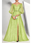 Corte Trompeta Sirena Hasta el Suelo Trajes de gala Vestidos de noche Corte Cenicienta Vestimenta formal Elegante Manga 3/4 Cuello Barco Fiesta de jardin Boda Satén con Abertura Bordados Apliques