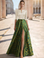 Corte A Hasta el Suelo Bordado con cuentas Vestido formal Vestido de madre de la novia Vestidos de noche Vestido de baile con sobrefalda Vestimenta formal Elegante Bloque de Color Split High Media