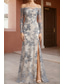 Corte A Hasta el Suelo Vestidos de noche Corte Cenicienta Vestimenta formal Split High Manga Larga Escote en Pico Formal Satén con Estampado flor