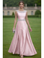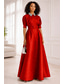 Corte A Hasta el Suelo Vestidos de noche Corte Cenicienta Vestimenta formal Elegante Sedoso Manga 3/4 Escote en Pico Boda Formal Bolsillo Satén elástico con Lazo(s)