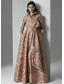 Corte A Hasta el Suelo Vestidos de noche Corte Cenicienta Vestimenta formal Elegante Bloque de Color Manga 3/4 Escote en Pico Boda Formal Vestido champán para madre de la novia Satén con Estampado