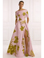 Corte A Hasta el Suelo Vestidos de noche Elegante Floral Split High Media Manga Escote en Pico Fiesta de jardin Boda Satén Tafetán Espalda desnuda con Estampado flor Abertura Bolsillo