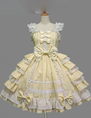 Dulce lolita Talla Grande vestido de vacaciones Vestidos Falda Overol / jsk Mujer Chica Algodón Japonés Disfraces de Cosplay Amarillo / Azul / Morado Color sólido Lazo Casquillo Manga Corta Corto