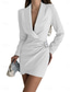 Mujer Vestido de Fiesta Vestido Cóctel vestido de trabajo Frunce Cuello Camisero Manga Larga Mini vestido Formal Vestido de invierno Formal Negro Blanco Invierno