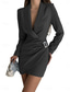 Vestido negro corto para mujer, estilo blazer, elegante, para el trabajo, minivestido de moda, con solapas abotonadas, manga larga, liso, corte regular, negro, azul, caqui, primavera y otoño, tallas