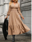 Mujer Vestido informal Vestido largo maxi Plisado Diario Elegante Moda Cuello Camisero Manga Larga Negro Marrón Albaricoque Color