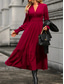 Mujer Vestido informal Vestido Midi Retazos Con cinturón Casual Escote en Pico Manga Larga Rojo Color