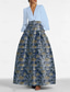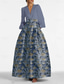 Corte A Hasta el Suelo Trajes de gala Vestidos de noche Corte Cenicienta Vestimenta formal Elegante Vintage Floral Manga Larga Escote en Pico Boda Formal Bolsillo Nailon con Estampado flor