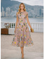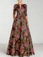Corte A Hasta el Tobillo Vestido Midi Vestido formal Vestido de flores Vestidos de coctel Elegante Vintage Floral Manga 3/4 Escote en Pico Fiesta de jardin Boda Bolsillo Jacquard Espalda desnuda con