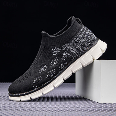 Zapatillas de punto sin cordones para hombre, parte superior de malla transpirable con ajuste cómodo, zapatos casuales livianos para actividades diarias y al aire libre