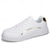 Zapatillas blancas para hombre: material de piel sintética con detalles dorados, diseño elegante para uso diario y eventos informales.