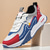 Zapatillas deportivas de malla para hombre con detalles en rojo, blanco y azul, comodidad ligera, ideales para uso diario, actividades al aire libre y viajes.