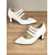 Zapatos de tacón con tira trasera y lunares retro de los años 50 para mujer: piel sintética blanca de charol con punta puntiaguda y tacón metálico para fiestas vintage y eventos formales.