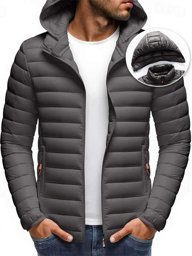 Sexo: Hombre, Tipo de ropa de abrigo: Chaqueta acolchada, Abrigo de invierno, Chaqueta acolchada, Ocasión: Ropa Cotidiana, Cita, Vacaciones, Temporada: Invierno, Función: Mantiene abrigado, Tejido: Poliéster, Estilo: Casual, Moda, Cómodo, Longitud del Abrigo: Regular, Diseño: Color sólido/liso, Bolsillo, Escote: Con Capucha, Delicado: Limpieza húmeda y en seco, Lavable, Material de Relleno: Poliéster, Día listado: 10/31/2025,