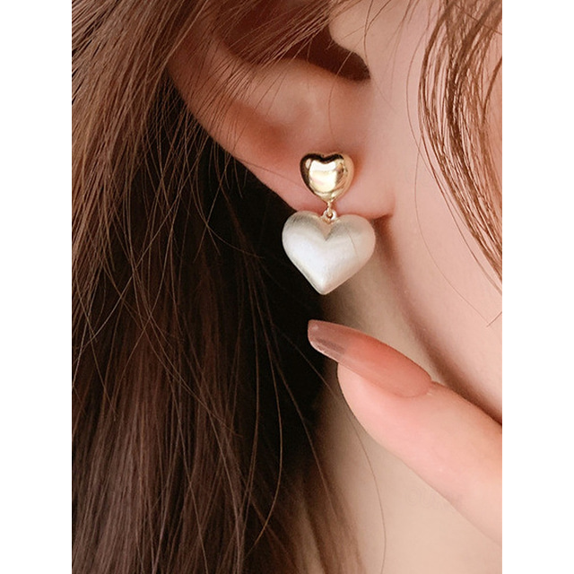 Pendientes de aleación en forma de corazón para mujer con detalles dorados, perfectos para el día de San Valentín y bodas.