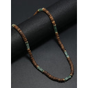 Collar de cuentas de madera natural para hombre con detalles en turquesa, estilo bohemio surfista, joyería ajustable para playa, festivales y atuendos casuales.
