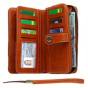 Cartera de piel sintética con bloqueo RFID para mujer: cartera de mano con cremallera de gran capacidad, 24 ranuras para tarjetas y correa para la muñeca |