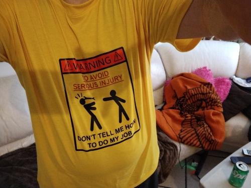 I wear this shirt quite often and its always good for a few laughs at my job.