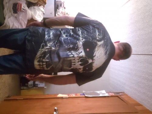 The Shirt showing the physique, Tattoos and what looks like Machinery exposed is the one I wanted to get. Im not sure if it was available but, it didnt say otherwise.