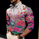 Hombre Floral Estampados POLO polo con cremallera Camiseta de golf Manga Larga Camisa Escote Chino Exterior Calle Amarillo Rosa Azul Piscina Morado Verde Trébol Cremallera Estampado Ropa Moda Ropa de |
