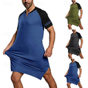 Hombre Pijamas Ropa de salón Pijama Camisa de dormir 1 pc Color puro Moda Confort Suave Hogar Cama Poliéster Transpirable Escote en V Manga Corta Básico Primavera Otoño Azul Piscina Negro |