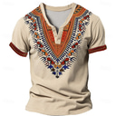 Hombre Patrón africano Camiseta Henley Shirt Manga Corta Impresión 3D Design Étnico Casual Diario Verano Caqui Gris Escote en Pico Henley Camiseta Henley |