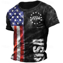 4 de julio de 2026 250º Día de Conmemoración Camiseta de manga corta gráfica patriótica de impresión 3D de hombre bandera americana Veterano cuello redondo |