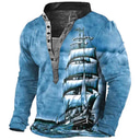 Hombre Henley Shirt Tee Graphic Barco Henley Ropa Impresión 3D Exterior Casual Manga Larga Abotonar Estampado Moda Design Elegante Vintage |