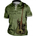 Hombre Henley Shirt Tee Graphic Guitarra Henley Ropa Impresión 3D Diario Deportes Manga Corta Acordonado Estampado Moda Elegante Vintage Casual |