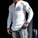 Hombre Henley Shirt camisa fresca Camisa de manga larga Manga Larga Henley Primavera & Otoño Letra Estampados Design Básico Casual Estampado Abotonar Calle Deportes Festivos Azul Piscina Negro Blanco
