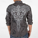 Hombre Estampados Tótem Camisa camisa occidental Camisa vaquera Manga Larga Moda Design Casual Exterior Diario Otoño invierno Cuello Vuelto Estampado Abotonar Gris