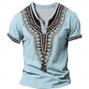 Hombre Patrón africano Camiseta Henley Shirt Manga Corta Impresión 3D Design Étnico Casual Diario Verano Azul Piscina Caqui Escote en Pico Henley Camiseta Henley