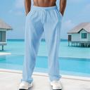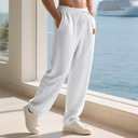 Hombre Pantalones de lino Pantalones Pantalones de verano Pantalones de playa Correa Cintura elástica Plano Comodidad Transpirable Exterior Diario Noche Moda Ropa de calle Negro Blanco |