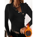 Mujer Camisa Retazos Botones Color sólido Básico Casual Manga Larga Escote en Pico Tops regulares Diario Negro Rojo Gris Otoño Invierno |