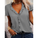 Mujer Camisa Blusa Volante Color sólido Casual Manga Corta Escote en Pico Tops regulares Diario Azul Piscina Negro Blanco Verde Trébol Gris Verano |