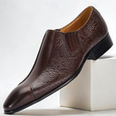 Mocasines de piel marrón oscuro con estampado de cocodrilo y elásticos para hombre, zapatos Derby Kentucky para un estilo informal de negocios. |