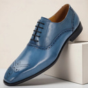 Zapatos de vestir brogue de piel de vacuno auténtica azul para hombre: zapatos clásicos con cordones para eventos formales, negocios y bodas. |