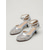 naisten hopeanväriset metallinhohtoiset tanssikengät, mary jane -hihnalla varustetut matalat korkokengät tyylikkääseen tanssimiseen