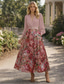 A-linja Polven yli Cocktailmekot Tyylikäs Vintage Kukka-aihe Pitkähihainen V kaula-aukko Puutarhajuhlat Häät Tasku Jakardi kanssa Kukkapainatus Rusetti(rusetit)