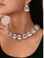 Naisten helmikorusetti korvakoruilla, kaulakorulla ja rannekorulla - elegantit vintage-tyyliset asusteet kristallisilla yksityiskohdilla juhlasaliin, häihin ja virallisiin tilaisuuksiin